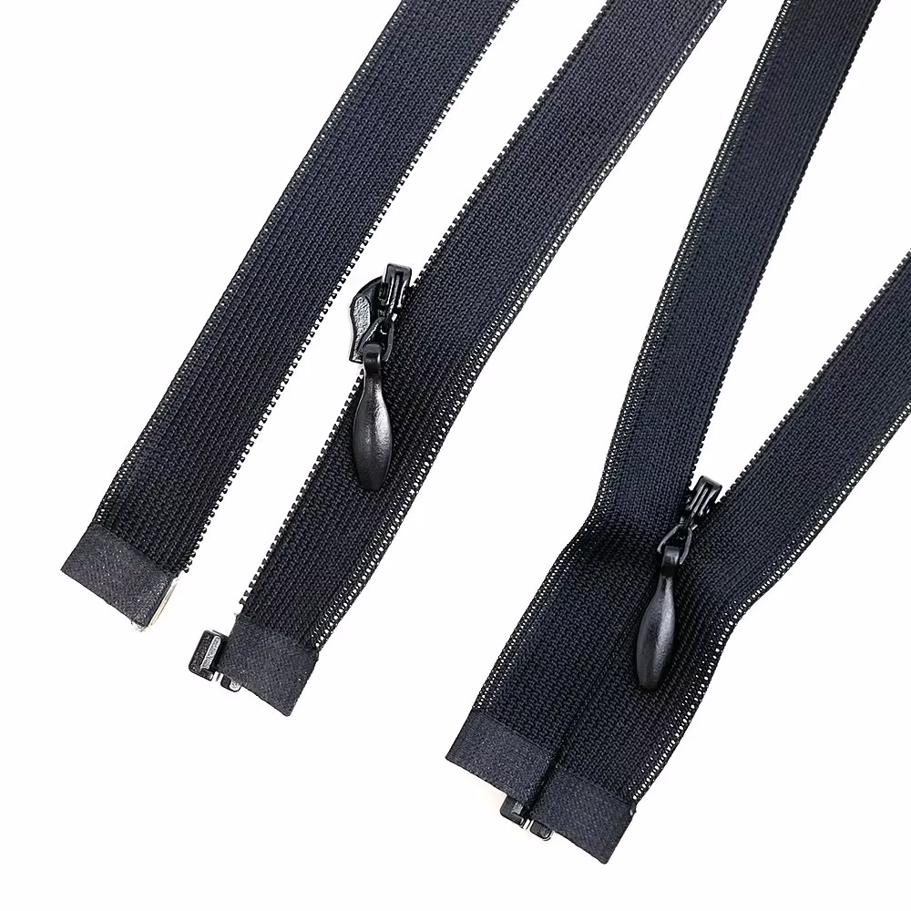 The open-end invisible zipper is characterized by concealment and removable design, and is used in performance clothing and yoga training clothing.