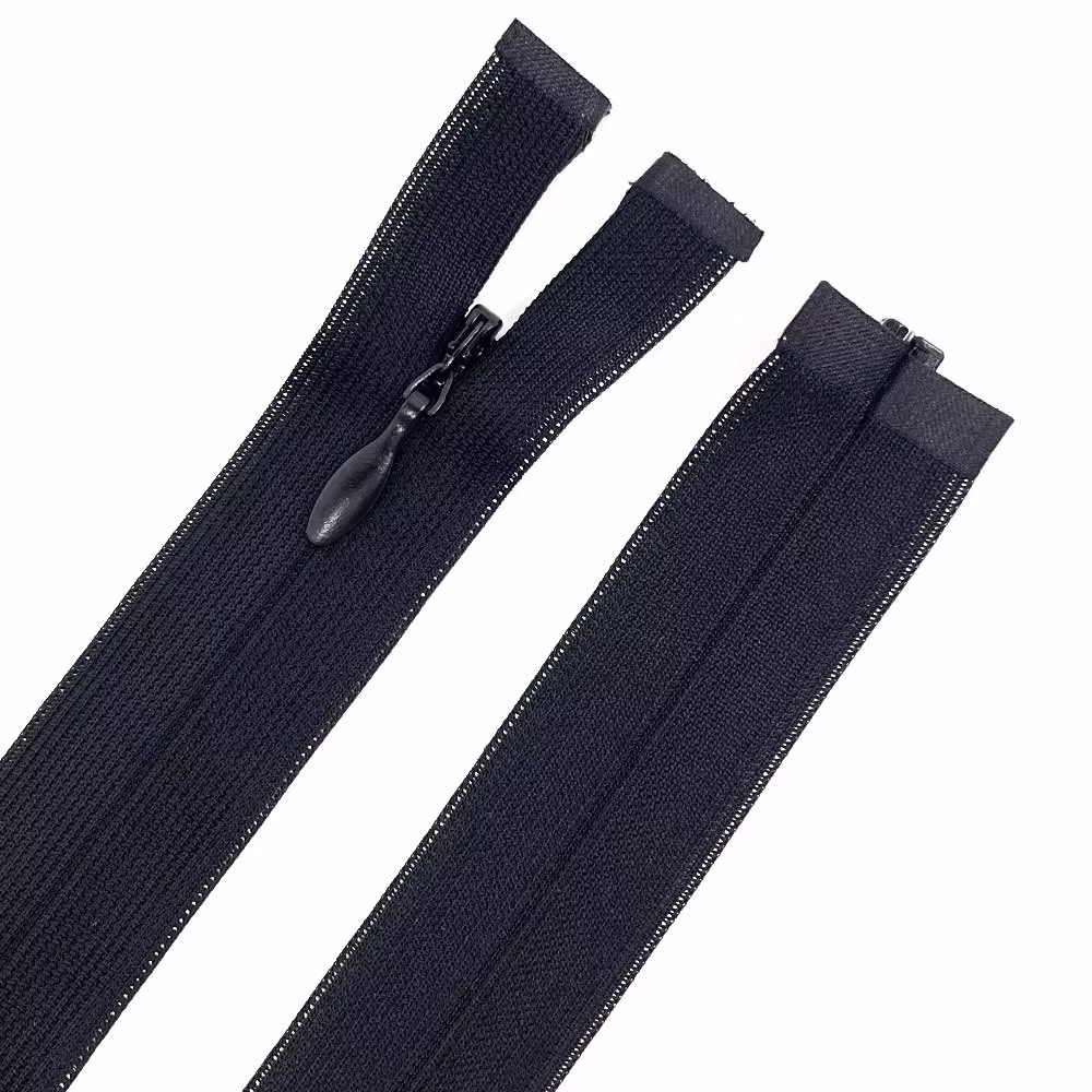 Lace invisible zippers, characterized by their semi-transparent or transparent tape, provide superior visual concealment. They are ideally suited for application on sheer or translucent fabrics, including chiffon, tulle, and organza.