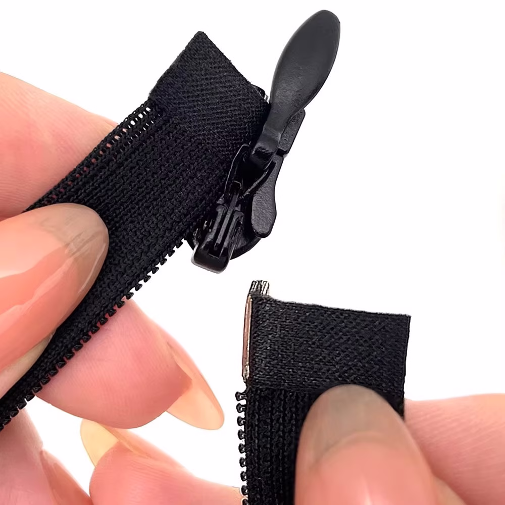 Close end invisible zippers are the most commonly used and standard invisible zippers. Mostly used in skirts and pillows.